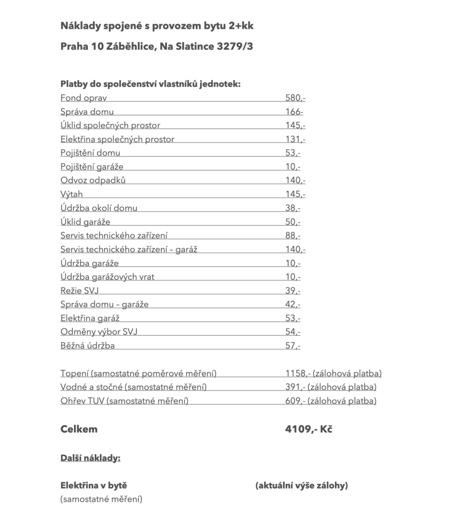 NÁKLADY SPOJENÉ S PROVOZEM BYTU