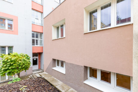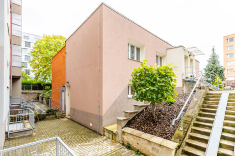 Jedná se o malý objekt s čtyřmi byty, postavený ve vnitrobloku. Tento byt je umístěný v přízemí tohoto domu a má svůj vlastní vchod a je možné využívat část pozemku před bytem. Do bytu je možné jít přes bytový dům nebo zadním vchodem ze zahrady.